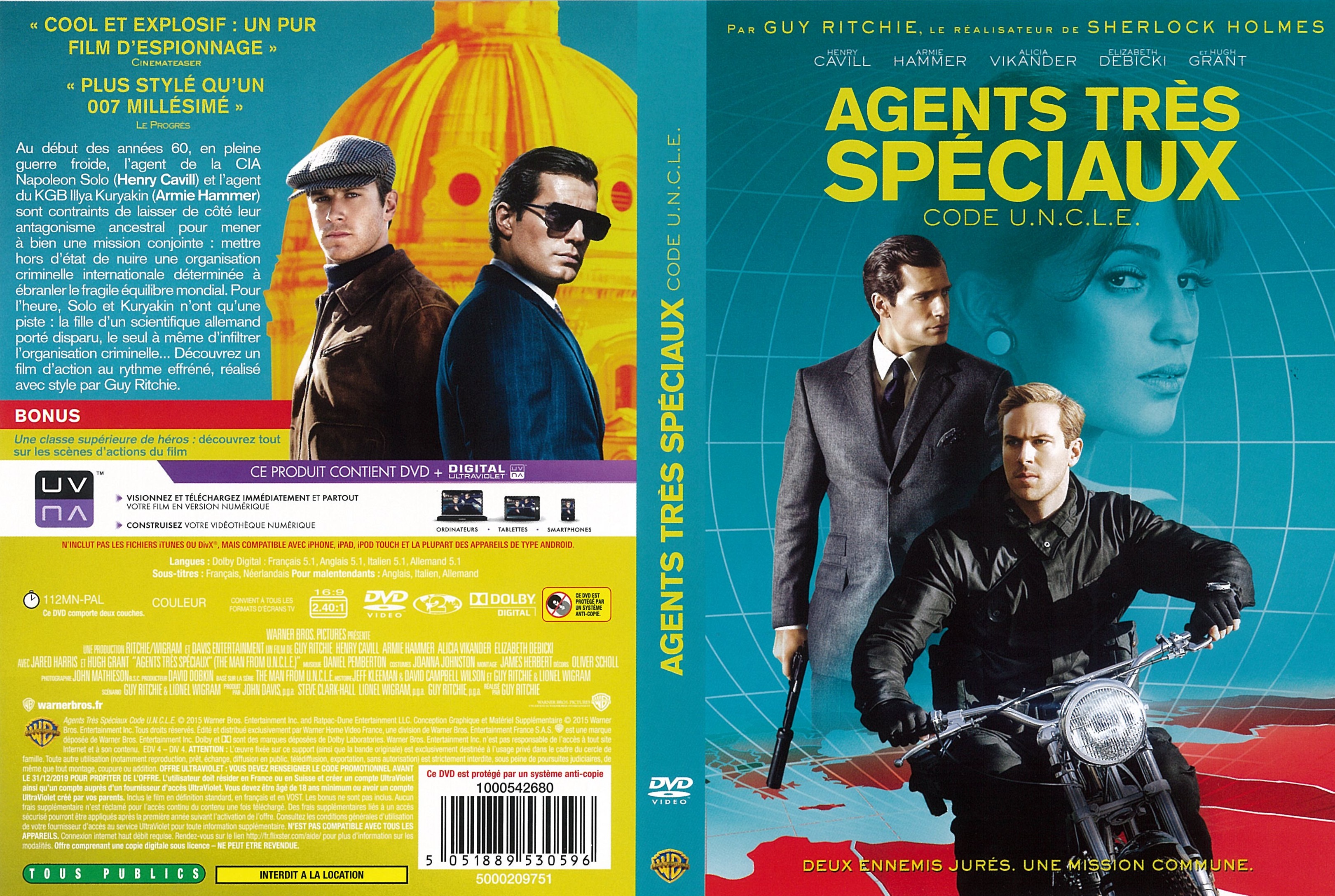 Au début des années 60, en pleine guerre froide, Agents très spéciaux - Code U.N.C.L.E. retrace l'histoire de l'agent de la CIA Solo et de l'agent du KGB Kuryakin. Contraints de laisser de côté leur antagonisme ancestral, les deux hommes s'engagent dans une mission conjointe : mettre hors d'état de nuire une organisation criminelle internationale déterminée à ébranler le fragile équilibre mondial, en favorisant la prolifération des armes et de la technologie nucléaires. Pour l'heure, Solo et Kuryakin n'ont qu'une piste : le contact de la fille d'un scientifique allemand porté disparu, le seul à même d'infiltrer l'organisation criminelle. Ils se lancent dans une course contre la montre pour retrouver sa trace et empêcher un cataclysme planétaire.