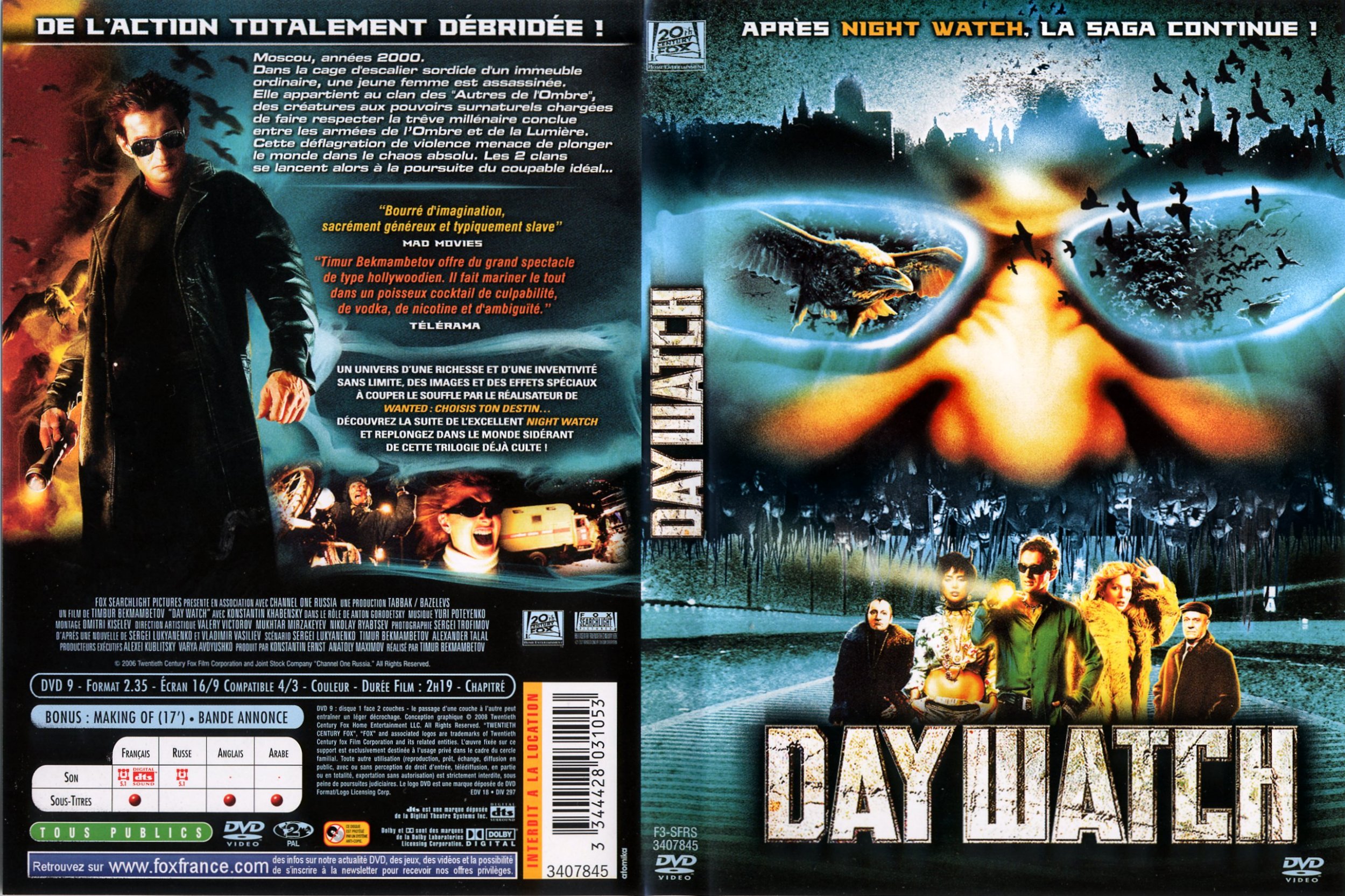 Moscou, de nos jours. Dans une cage d'escalier d'un immeuble ordinaire, une jeune femme est assassinée de sang-froid, mais on ne relève aucune trace de violence sur son corps.On découvre assez rapidement que cette femme était une 'Autre de l'Ombre' et qu'elle était membre de Day Watch, une organisation secrète dirigée par un sombre et puissant sorcier dénommé Zavoulon. La trêve fragile, qu'avaient conclue la Lumière et l'Ombre et qui s'est maintenue pendant des siècles, est brisée - les 'Autres de la Lumière' étant les principaux suspects.Guesser, le commandant de Night Watch, rassemble immédiatement ses troupes, un meurtre étant un événement grave et ses conséquences pouvant conduire à une guerre ouverte entre les forces de la Lumière et celles de l'Ombre. Night Watch doit réagir, mais Guesser doit préalablement découvrir où chacun des 'Autres de la Lumière' se trouvait au moment du meurtre. Il s'avère que seul Anton Gorodetski n'a pas d'alibi à fournir...Anton continue de combattre les forces du mal. Alors qu'il tente de retrouver son fils, une nouvelle menace, plus terrifiante encore que ses combats passés, se fait jour...