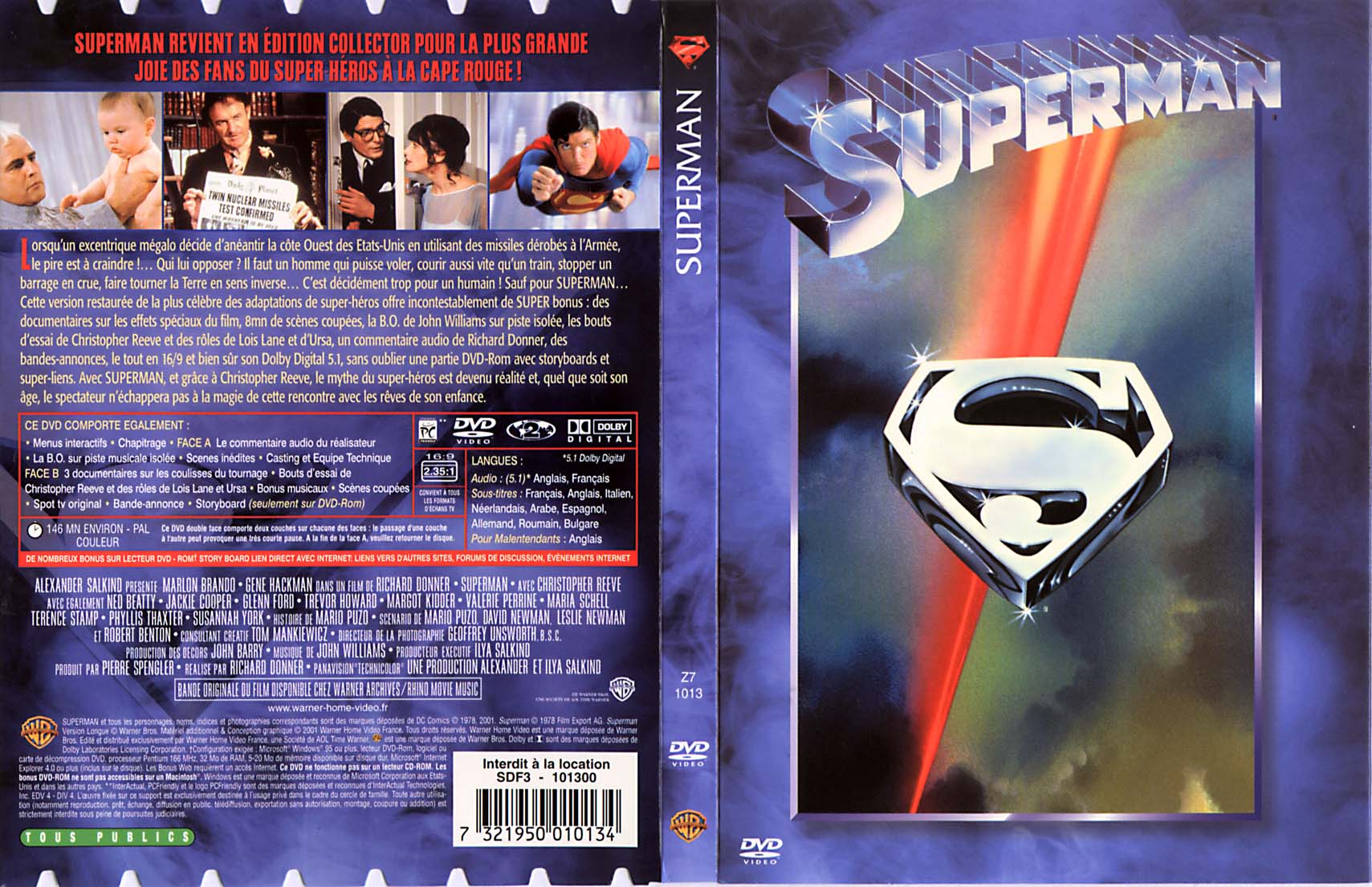 Superman 01 Réalisateur : Richard Donner, Jerry Siegel, Joe ShusterAnnée de production : 1978 Durée : 2 h 25 min Genre : Science fiction |