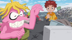 À cause de l'influence de Milleniumon, des objets du monde réel se matérialisent dans le Monde Digital. Poubellemon enquête dans une de ces décharges, et lui et Kôshirô se trouveront des atomes crochus.