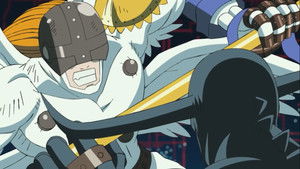 Suite à une attaque glaçante, Sora est immobilisée. Pendant que Yamato la protège, Joe se retrouve à assurer leurs arrières et ne peut plus reculer : il doit affronter le terrible Mammon.